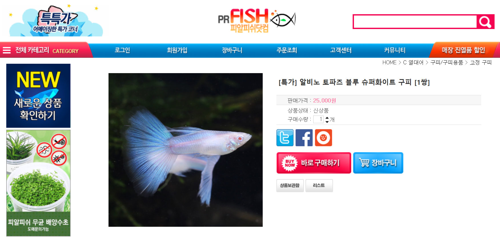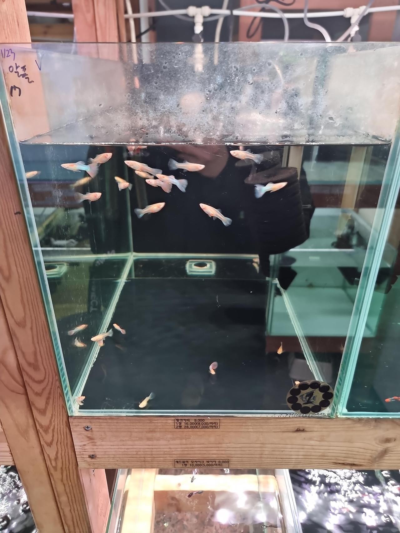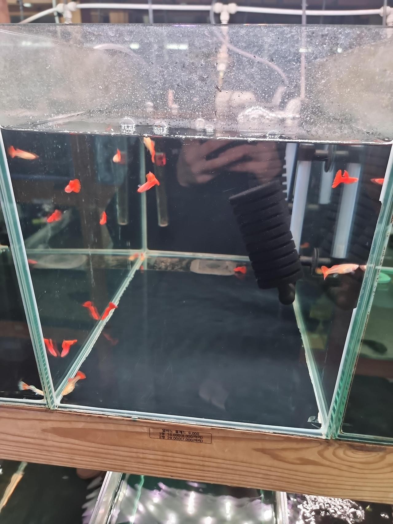 생각보다 가격이 괜찮음. 일반적인 애완동물샵이나 온라인몰에서 판매하는 것보다 저렴한 제품도 많았고(심지어 마트 애완동물 코너보다 조금 더 저렴함), 수족관 관련 용품도 종류가 다양했음. 온라인으로 봤던 동일 품종의 물고기들이 평균적으로 약 2~4천원 정도 싸게 판매되고 있었음. 결과적으로, 택배 생물 포장비도 빠지니까 한마리만 구매해도 만원정도 저렴...!