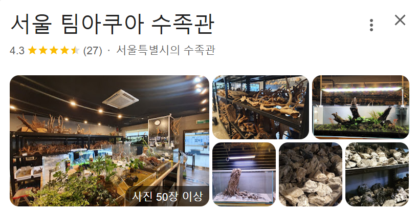 그렇게 아침부터 집 주변 수족관을 찾아봤는데 오,,, 서울 서쪽 물생활 하시는 분들의 보물창고인 서울 팀아쿠아 수족관을 알게되었고 주말에 가기로 결정.