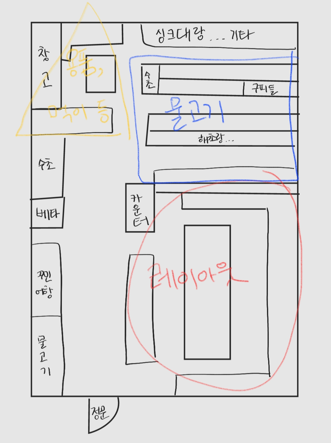 새로 들어온 어항 정리하시면서 레이아웃쪽 설명해주시는 1분과 내부에서 물고기 설명해주시는 1분, 총 2분이 그 날 출근하셨던 듯? 가게 내부가 생각보다 넓고 정리가 잘 되어 있어서 처음 방문하는 사람도 쉽게 둘러볼 수 있음.
