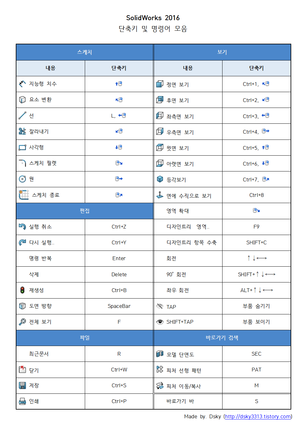 +) 솔리드웍스 단축키 및 명령어 모음집